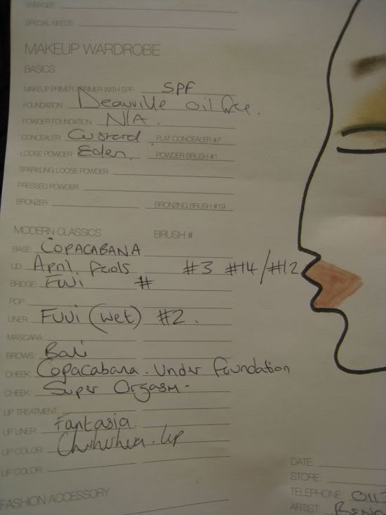 fools,腮红选了super orgasm(这个我后来买啦)。先看一下结束后给我的那个妆面和用品图。
