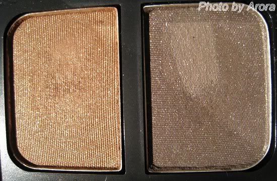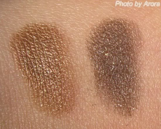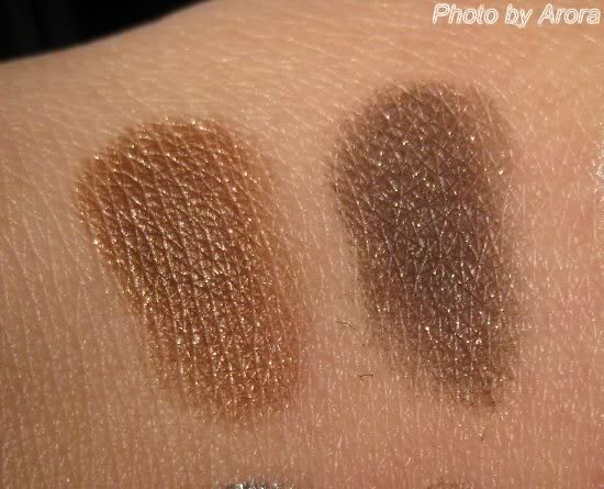金棕色配带闪棕黑色。搭配起来化就是很浓郁的巧克力烟熏,秋冬trend. 由于两个颜色都带闪,效果不会太沉重。