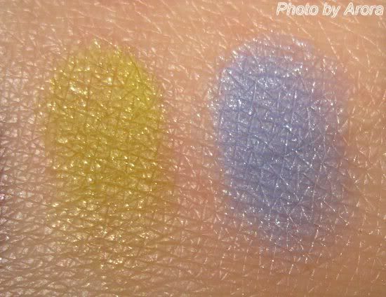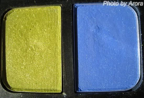 柠檬黄绿配颜料明蓝色。热带风格的鲜艳配色,当年刚开始接触NARS第一眼看中的就是它,觉得很像鹦鹉:P 柠檬黄绿一边有很美丽的水波感光泽,蓝色边没有明显的闪,颜色很透。