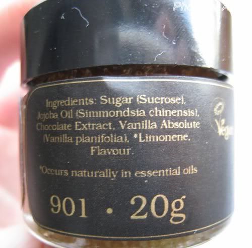 言归正传,上周某日和朋友相约逛街,就转进这家店看看,在靠近门口的地方看到了本篇主角的唇部磨砂,名字叫Sweet Lips Sugar Lip Scrub. 共有两种口味,薄荷和香草巧克力的。我打开闻了闻香草巧克力那个口味的,很甜很香,价格是20g 4镑40,相当亲民,就买下一罐用着玩玩看。