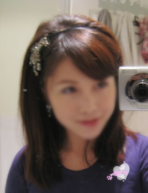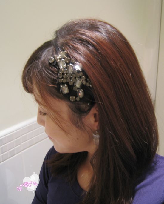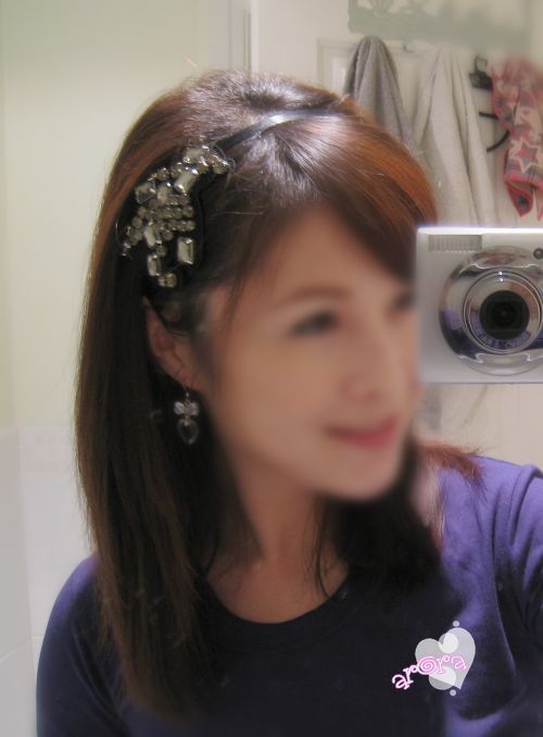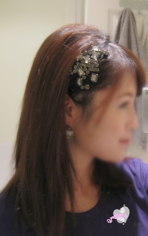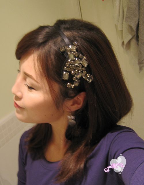 为了戴头箍好看, 把头顶那个位置拉的格外蓬一点, 下面是戴好发箍的照片.