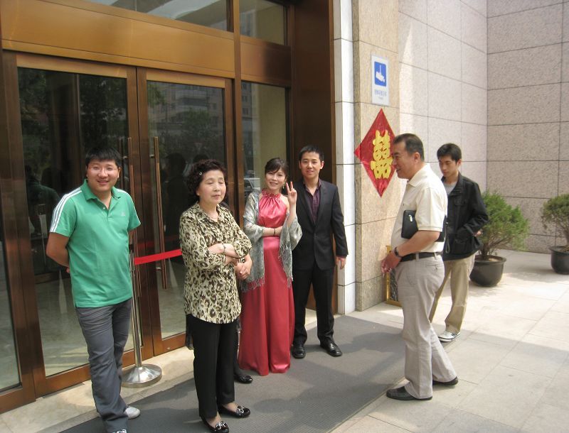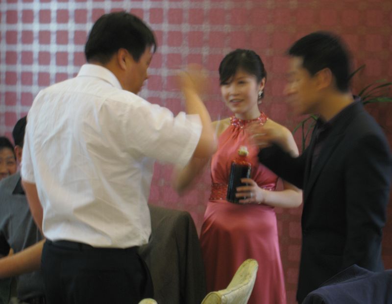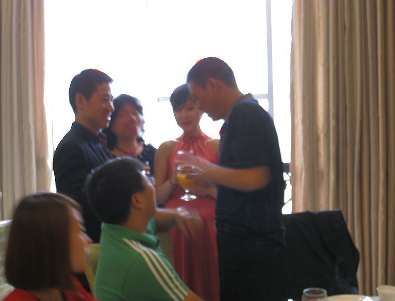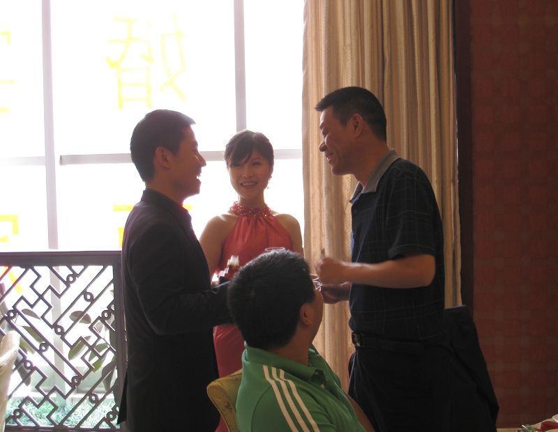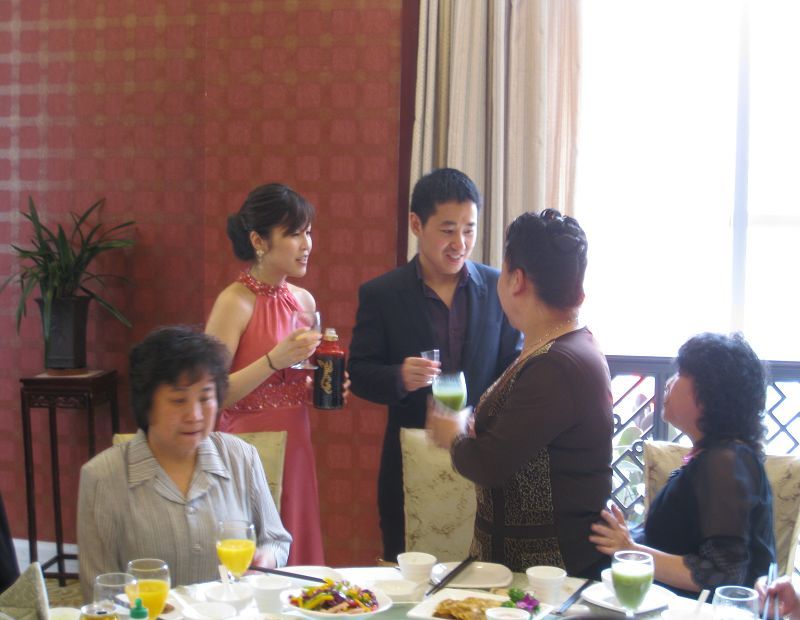 敬酒中。看我那个肚子,看到照片我都惊了,本以为掩饰的挺好了呢。