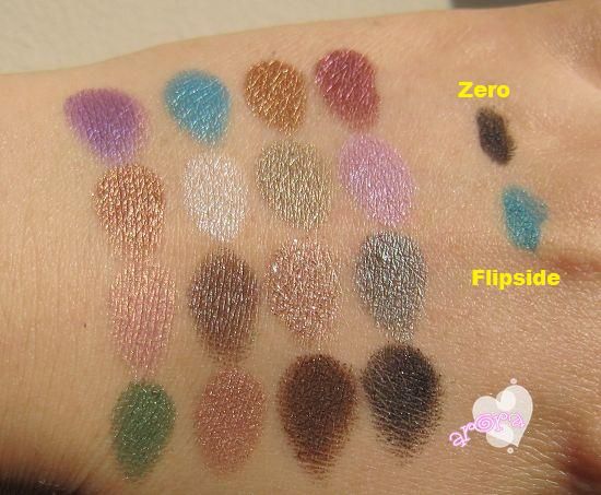 重头戏,内容物。这回的眼影颜色我非常非常喜欢啊,虽然里面有不少和I,II代的重复色,就是换了个色号名目,但是也有一些新色,且出彩的颜色颇不少。里面配了一个小号的udpp,两支24/7眼线笔,黑色那支zero是UD盘子的常规配备,另外那个蓝色的flipside是新色,明亮孔雀蓝。