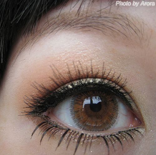 超闪亮金色,暖铜色加棕绿眼线。