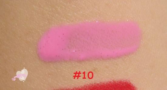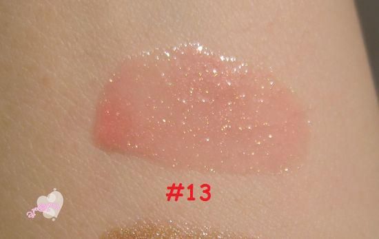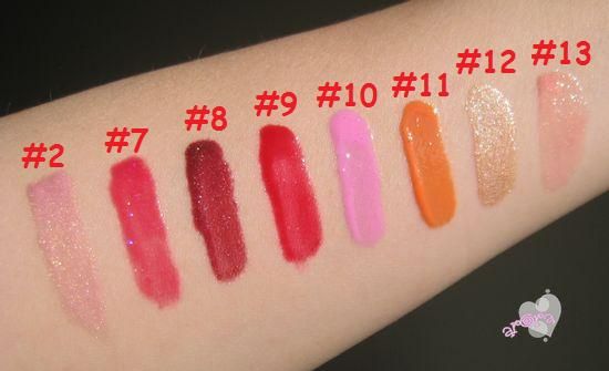 再说唇蜜本身,颜色跨度很大,有很日常的,也有特别一点的。有几个色号里面带闪,还有几只是奶油质感完全不带闪的。都不粘,容易涂匀,显色度很好,有薄荷味,清清凉凉的很可爱。下面看试色。我还没拍上嘴照,能改天有功夫了拍了给大家看。
