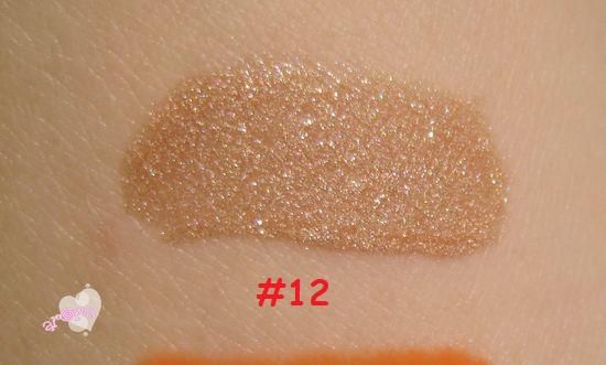 细碎闪金色。略带金属感,里面的闪很细腻,搭配烟熏妆非常有范儿。单擦,或者叠加在裸色系唇膏上面都不错的。