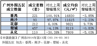 1、2014年第13周广州市外围五区各区一手住宅成交情况