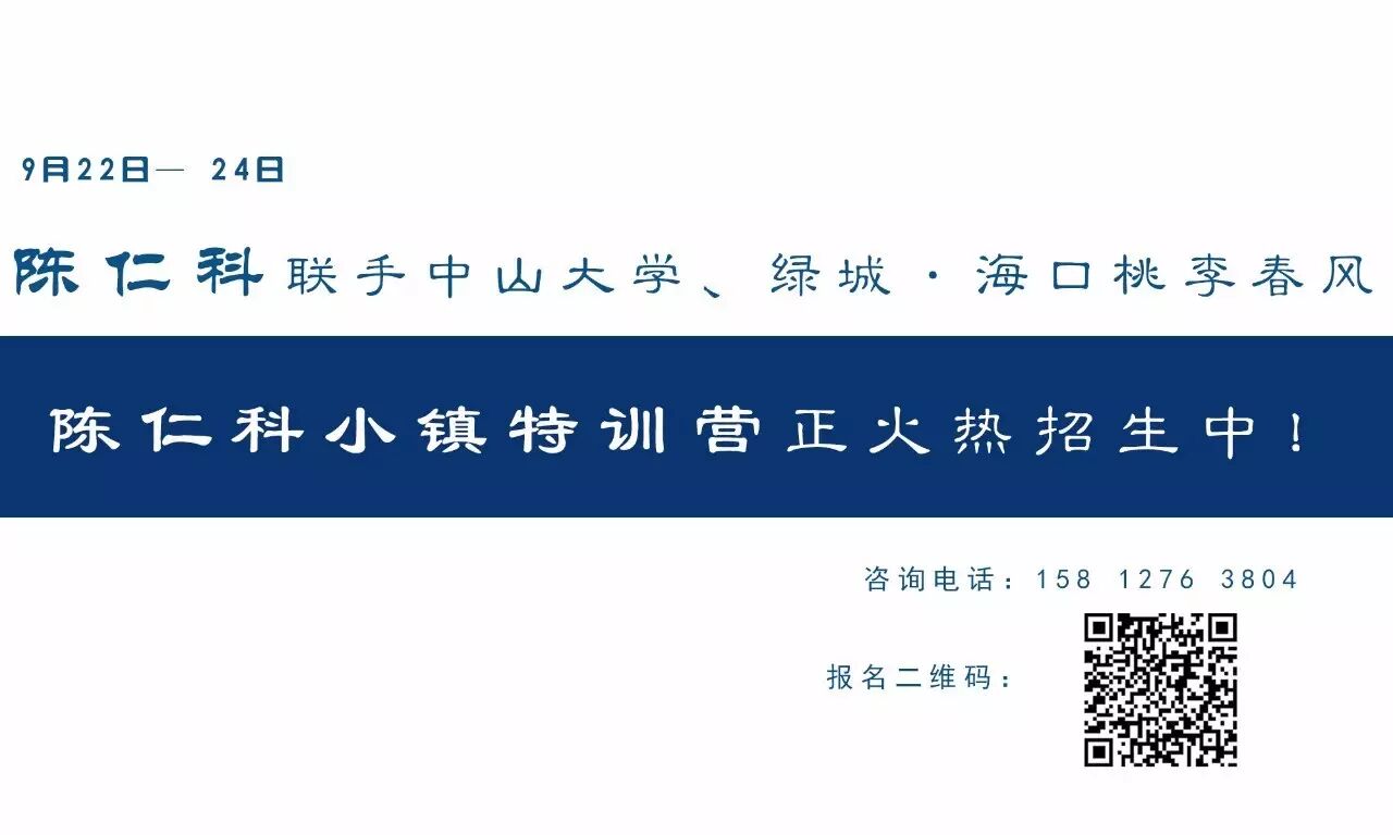 国内最负盛名的小镇专家授课、国家级特色小镇实地参观——9月22日~24日,陈仁科联手中山大学、绿城 ·海口桃李春风,隆重推出陈仁科小镇特训营,手把手教你如何做小镇!