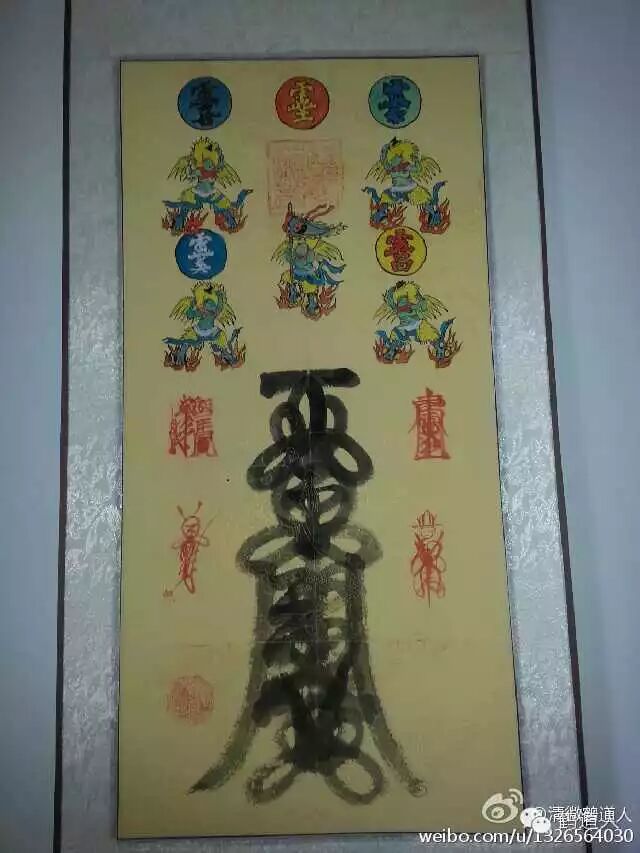 在一般人看来,符图之术并没有什么章法可寻,它们无非是道士和尚骗人弄财的把戏而已,因为很少有人知道符图的结构,于是民间便有“鬼画符”之说,用以饥讽符咒之术。金元文学家元好问说:“真书不人今人眼,几辈从教鬼画符。清代学者赵翼云:举场我叹鱼缘木,故叫卷人鬼画符。然而,讽刺与嘲笑并未解决问题,反而促进了符咒之术在实践中的不断完善.于是在宋元时期许多道教高道大师门,开始向人们披露符图的结构书符念咒的程序和秘遵事项,从而使这门“绝学”有一道可以出入的门径,从整体结构上看,每一道符一般都可以分为三个部分,即符座,符脚,符窍。所谓符座是指符图的上部:亦可叫做“符头”“符脚”指符图的下部。符窍,则为符图的中部(心脏),亦可叫做“符心”。符头符心及符脚上,中,下三部分结合为一,便成为一道完备的符图.先说符座(符头).道门中不同的流派,符图中不同的种类,所用的符座是不同的.如《帝令宝珠五雷祈祷大法》中所用的符皆以“雨”字为符头。又如神霄派所传〈高上神霄玉清真王紫书大法〉卷六所载四三道将军符。又以“鬼”字为符座,只是搏列在符的左边而已。再如上清派所传〈上清天枢院回车毕道正法〉中所收诸符部用三台星图为符座,至于其它各种各样的符座更是多不胜举,难以一-一述说.鹤道人所传符篆多以“—气化三清”及“天师心印”为符头。http://mmbiz.qpic.cn/mmbiz/z8lvTBEfrcjicyOSUiaY20yFRziaksPxRN84ZSWoNKQUgYfCzLuUhquooQdib479vIlSn2bkic1UXtEFCsjXkWtXDmQ/0