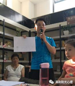 阳光心理刘军奇老师对小朋友们绘画“房、树、人 ”进行统一分析,麻麻认真听讲解。