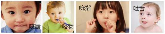 口呼吸、吐舌头、吮手指、咬笔头等。这些不良的口腔习惯不仅影响牙齿的位置,而且影响面型的发育。