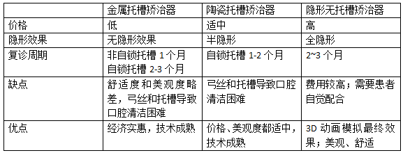 因此,选择矫治器的时候,应该参考正畸医生的建议,把治疗的最终效果放在第一位,其次可以考虑美观、舒适、复诊周期长等诉求,综合权衡下来,选择适合的矫治器。