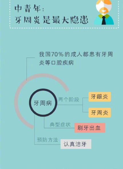 牙周炎是中年人常见的病,但却不像龋齿那样为人们所了解和重视。许多人患了牙周炎以为是“虚火上升,牙周发炎,吃点药就无事了。”殊不知,牙周炎常易反复发作,损害牙周的健康,导致牙齿松动脱落。