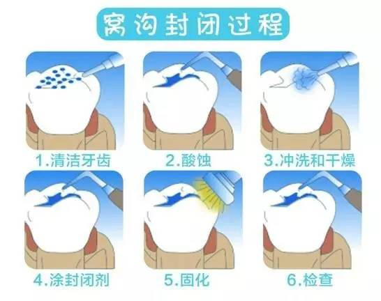 窝沟封闭就是把槽牙凹面上这些容易堆积食物残渣的小沟儿,清理干净后,涂上容易固化变硬的液体牙科材料(窝沟封闭剂),让食物碎渣不再聚集,让细菌无处生存。给宝宝牙齿的脆弱部位加上一层抵御细菌的保护措施,简单有效哦。