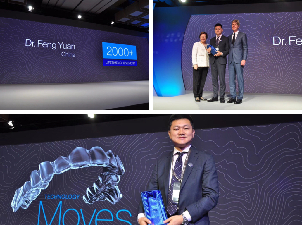 2018年隐适美亚太峰会上,全球总裁兼首席执行官Joseph M. Hogan以及全球副总裁兼亚太区VPJulie tay为本届中国大陆地区夺魁者袁峰医生颁奖。
