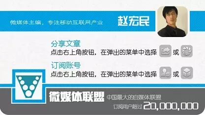 赵宏民(haipo1023),自媒体人,互联网评论人,曾任百度高级网络营销顾问,是速途网、艾瑞网、易观等专栏作家,现任微媒体主编,专注移动互联网产业。赵宏民官方微信定期推送原创评论、新闻文章。