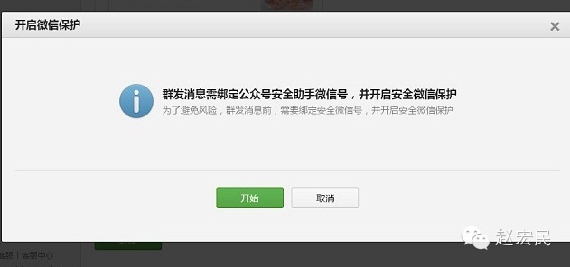 微媒体讯 5月22日下午6点,当我像往常一样,编辑好微信公众号的内容,点击确认发送的时候,出现了下面的弹窗: “群发消息需绑定公众号安全助手微信号,并开启安全微信保护”,这句话我解读下:以后我所运营的微信公众号要群发消息,必须绑定一个个人微信号。我心想,这也没啥啊!于是就按照要求开始操作: