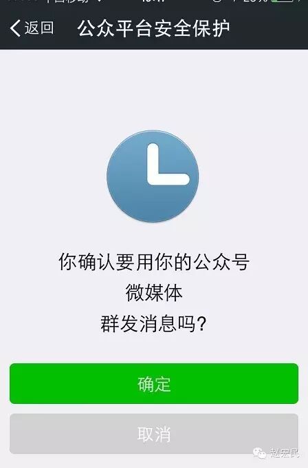 我咨询了一些微信运营的朋友,只是部分微信公众号需要上述验证,比如,赵宏民的个人微信公众号就是按照之前那样直接发送。