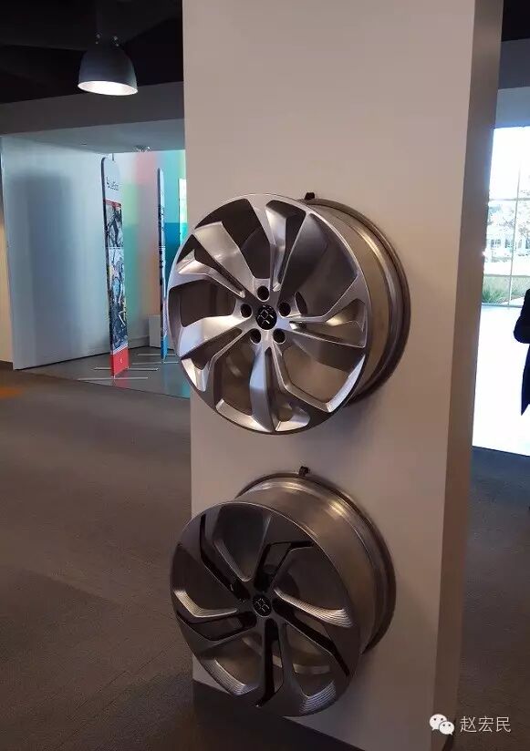 乐视的各个主流产品,在大厅均有体现,比如这是乐视超级汽车LeSEE的轮毂。