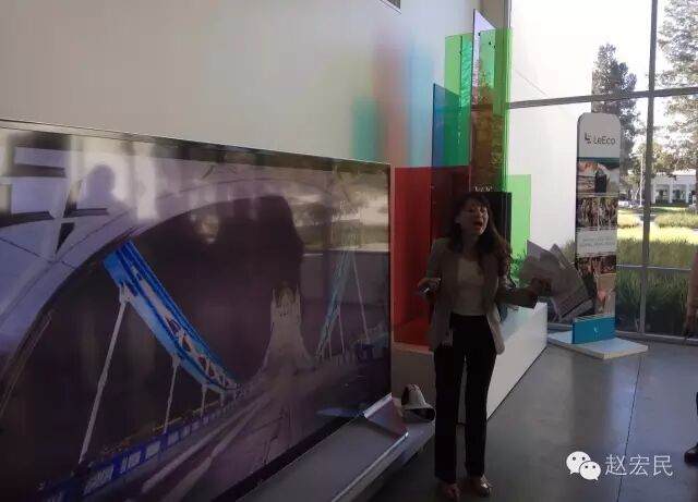 在进门后的大厅里,LeEco员工正站在85寸乐视umax85超级电视前分享,请原谅我拍摄水平。。。