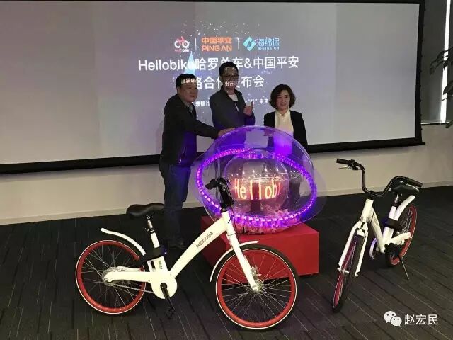 12月26日,宏民参加了一场新闻发布会,中国平安、海绵保和共享单车Hellobike哈罗单车,联合发布了一个“骑乘人员险”,就是当用户骑着Hellobike遭遇意外伤害,平安保险则按合同约定支付赔偿金,如果是恶劣天气情况下,赔偿金额则翻倍。