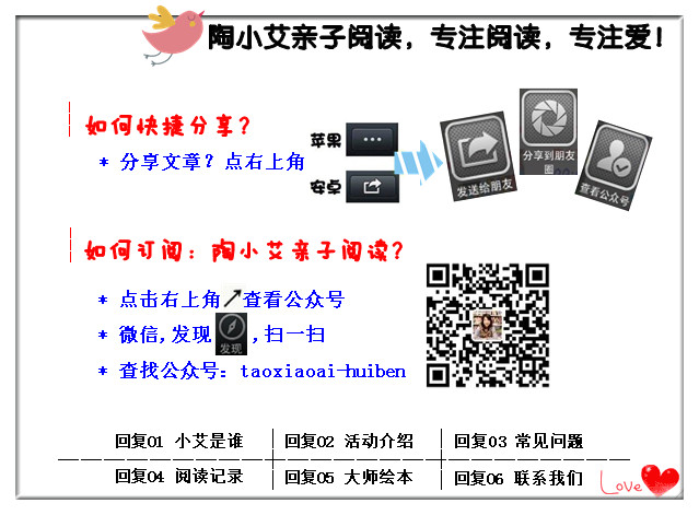 请大家关注陶小艾:亲子阅读实践者,爱贝乐亲子图书馆创始人。带着爱并不断的前行的外表柔弱内心强大的女子。