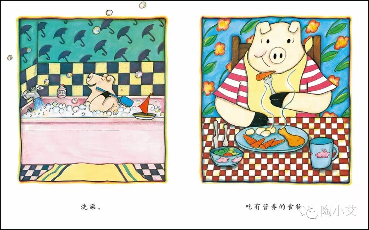 但是我喜欢这本书《我喜欢自己》,我喜欢这个“真心喜欢自己”的快乐小猪妹,她算不上特别漂亮,似乎也没有什么特异禀赋,就像我们身边最常见的小朋友,但是她很懂得照顾自己,既使没有朋友在身边,也会做一些让自己愉快的事情。如果犯了错或是遇到了挫折,她会给自己再一次的机会尝试。