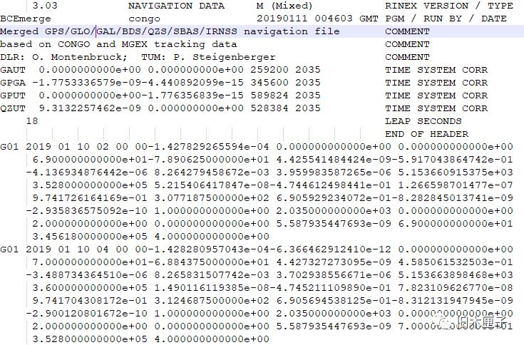 一、GPS 广播卫星星历文件如下(其中还有北斗、伽利略等各种卫星,共78995条数据,下面是部分数据格式):
