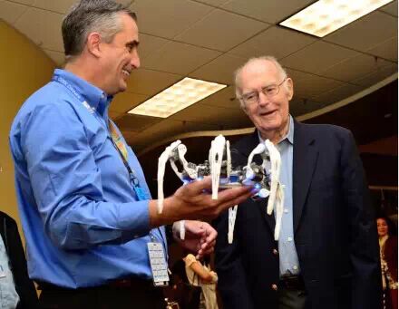 戈登·摩尔不仅首次构想出摩尔定律(事实上,DougEngelbart和摩尔的合作伙伴罗伯特·诺伊斯也发现了这一规律),他后来还联合创办了英特尔,将这一定律的演变节奏扩大至整个半导体行业,乃至整个世界。