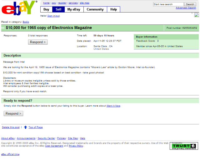 英特尔于 2005 年 4 月 11 日发布的有关《电子杂志》原件征求的“现在就要”原文。