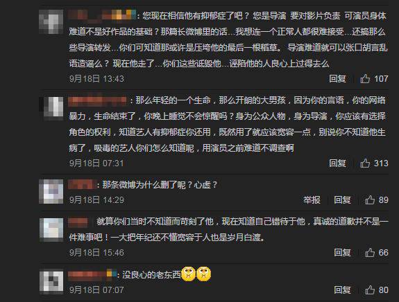 “作为电视剧导演协会副秘书长,我遇到这样的情况转发一下也是正常,况且我当时根本不知道是谁,微博也没有提及姓名,完全是对事不对人。艺人拍戏迟到,影响拍摄进度,每天造成的损失可能数十万甚至上百万,这个损失谁来承担呢?导演批评一下不是很正常吗?听之任之才是不负责任。”