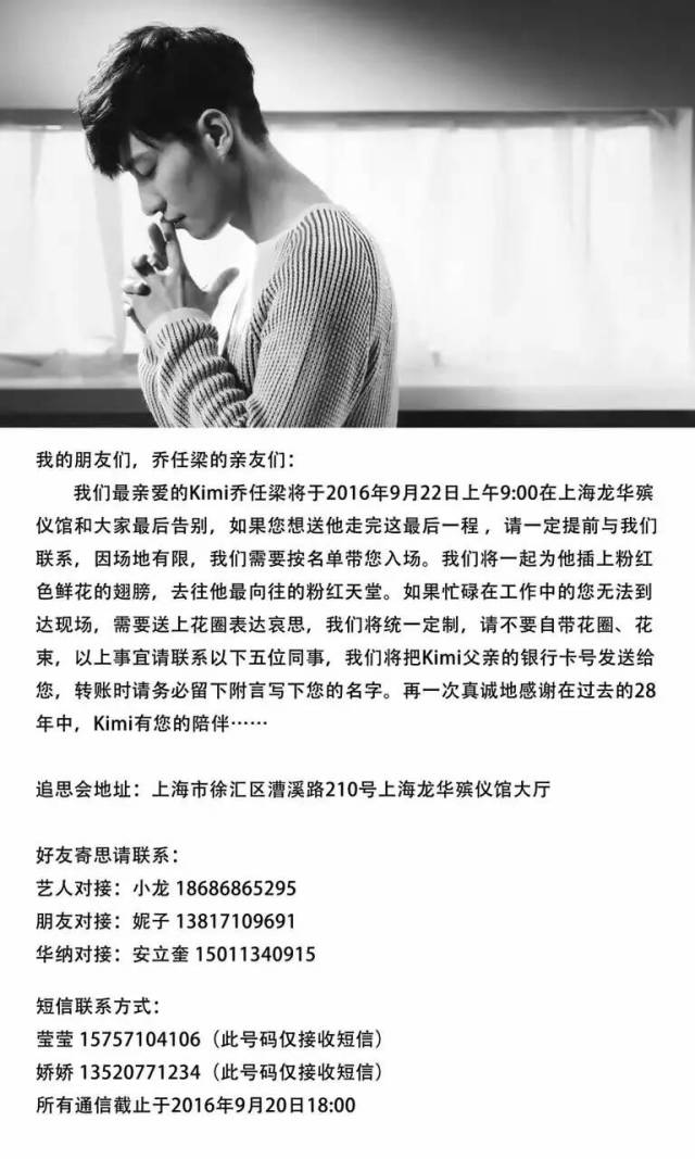 最后附上乔任梁告别仪式的具体信息,也许文明悼念才是对自己偶像离去的最好缅怀。