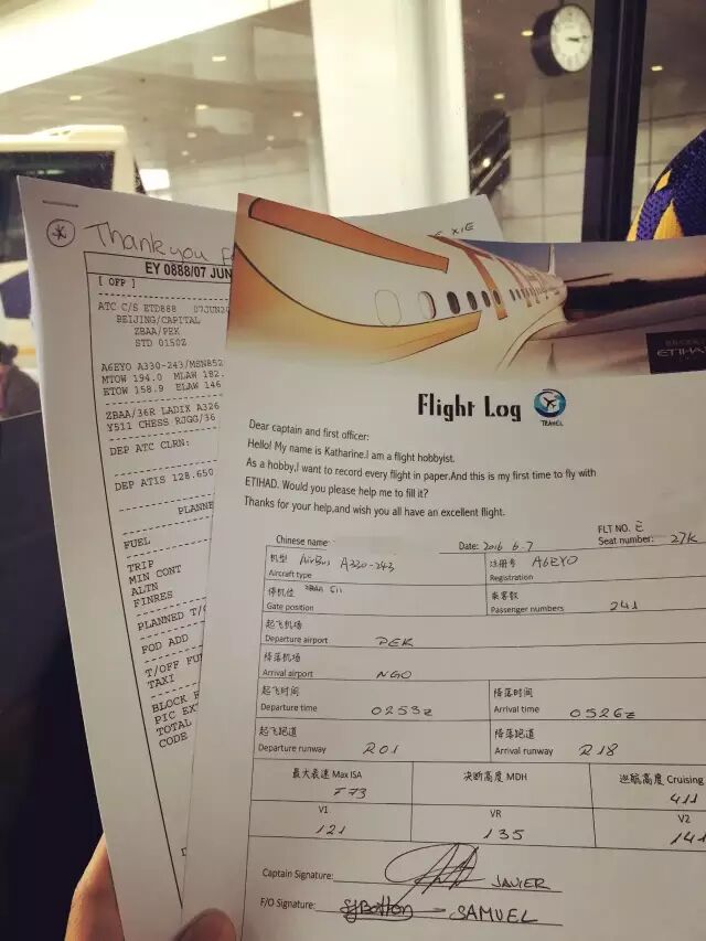 如果公司主动提供官方的Flightlog给喜欢飞行的大小盆友,这种利用机长帅气签名和颜值来圈粉的行为,我表示非常滋瓷!!