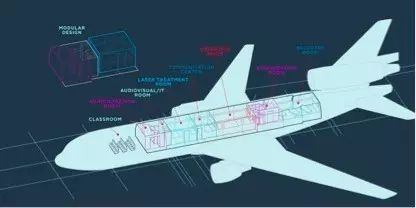 你知道吗,更重要的是,MD-10飞机也是一个教学医院哦!改装后的飞机前部有一个46人的教室!眼科大神们在手术时,可以实时给飞机教室里的当地眼科医生进行教学!是的!手术将在完全的3D范围下进行投放,受训医生能够佩戴3D眼镜观看手术接受培训。在沈阳的3周,预计将有200名当地眼科医务工作者接受培训。