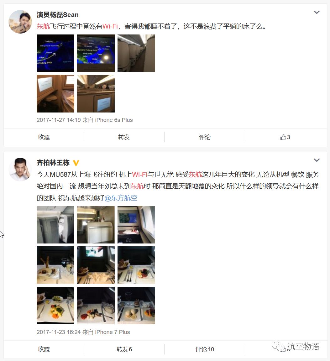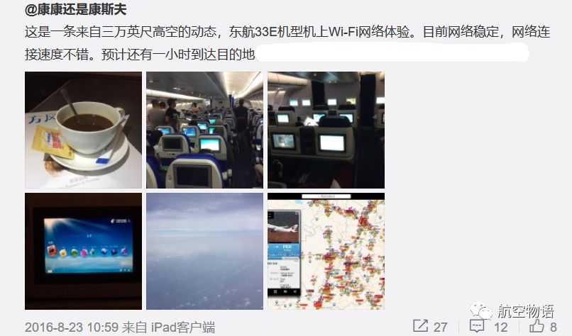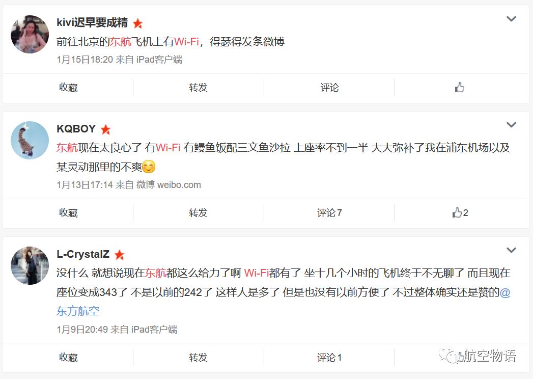 而我们在社交媒体上看到,越来越多的旅客开始在空中分享他们的上网体验。也有越来越的旅客因为可以机上上网成为了某家航空公司的忠实粉丝。在国内的航空公司中,东方航空目前国际远程宽体机wifi全覆盖,而且完全免费,已成为许多商旅人士的钟爱选择。