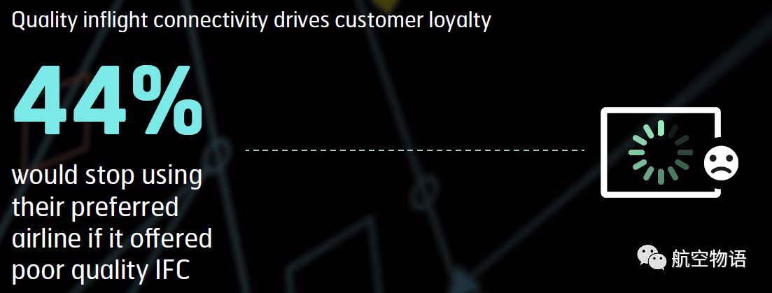 根据国际海事卫星组织2017年的一份调查报告,机上上网已成为旅客选择航空公司的前三大原因(1票价、2时刻、3机上上网)。如果机上上网不给力,44%的旅客会放弃自己原先喜爱的航空公司。