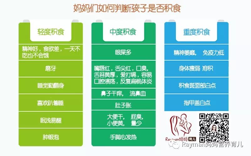 以下是R妈总结的积食的症状,并按照严重程度划分了三个等级,请粑粑麻麻仔细阅读。