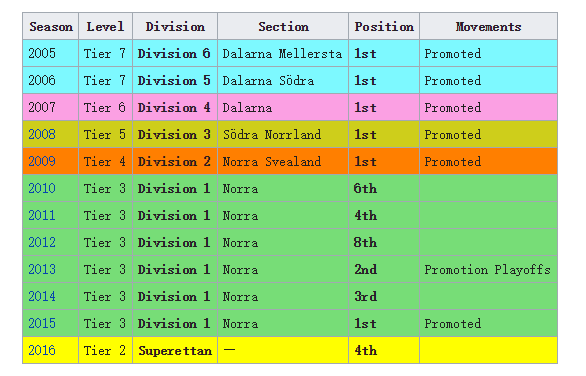 在第三级别联赛停留了6个赛季之后,2015年,达尔库尔德获得了联赛的头名,成功跻身瑞典甲级联赛(第二级别)。2016赛季,他们在甲级联赛中排名第四,遗憾地无缘升级;不过今年,卷土重来的他们终于实现了自己的梦想,达尔库尔德已经提前锁定了一个升级到瑞典超级联赛的名额!