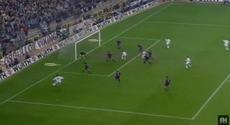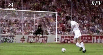 面对这球,舒梅切尔无计可施,只能后仰着头,眼睁睁地看着皮球在空中划出一道优美的弧线,坠入球网。