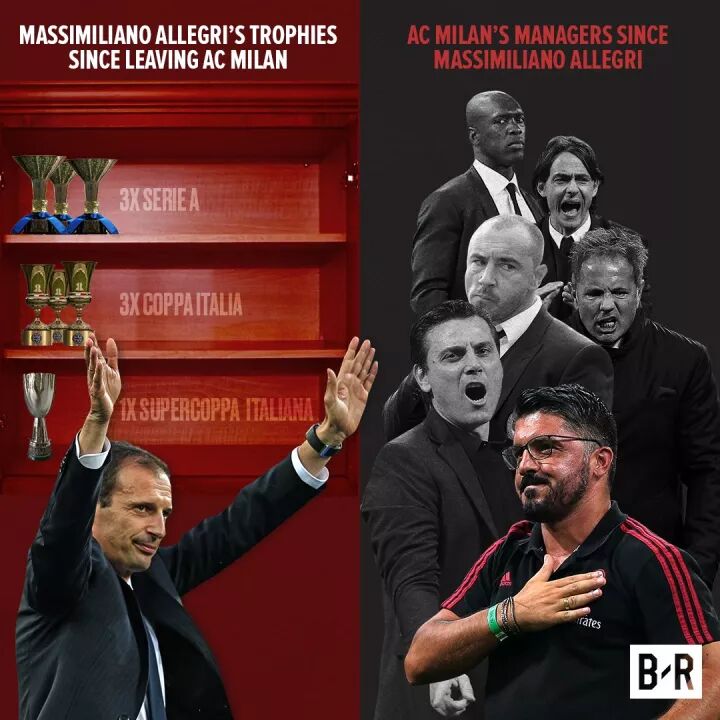 之后米哈伊洛维奇、布罗基、蒙特拉先后执教AC米兰,其中蒙特拉执教后,球队在2016-17赛季意甲最终位列积分榜第6位,拿到了进军欧联杯的资格,此外蒙特拉还率队拿到了意大利超级杯。但在今年夏天球队疯狂引进多名球员后,蒙特拉在14轮联赛过后只率队取得6胜2平6负的战绩,球队位列积分榜第7位。