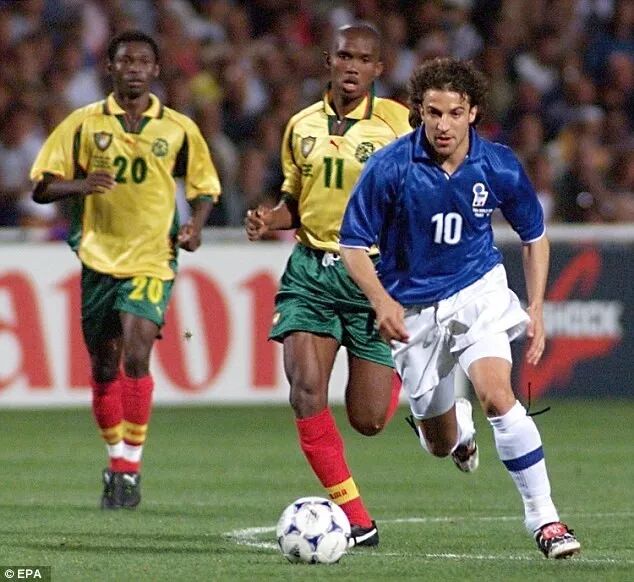 1998世界杯小组赛意大利3-0战胜喀麦隆,埃托奥替补出场,迎来了个人在世界杯上的首秀,当时年仅17岁的他是98世界杯最年轻的出场球员。