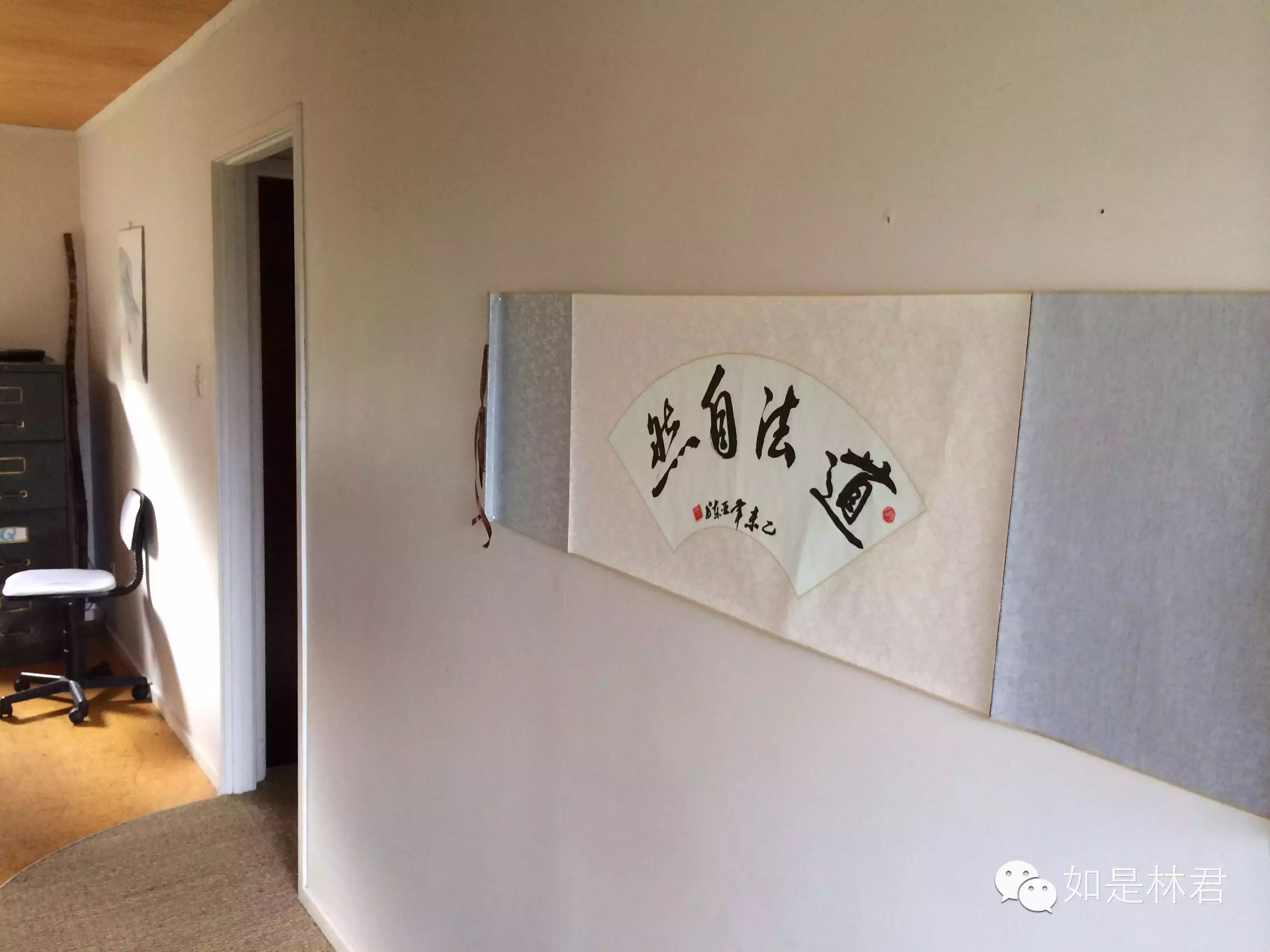 Jaqs是个十足的中国文化爱好者,尤其是中国的道文化,我把临行前请爸爸写的“道法自然”的书法作为礼物送给她,她很快就找到材料把它挂在了进门处的墙壁上,立刻为客厅增色不少。