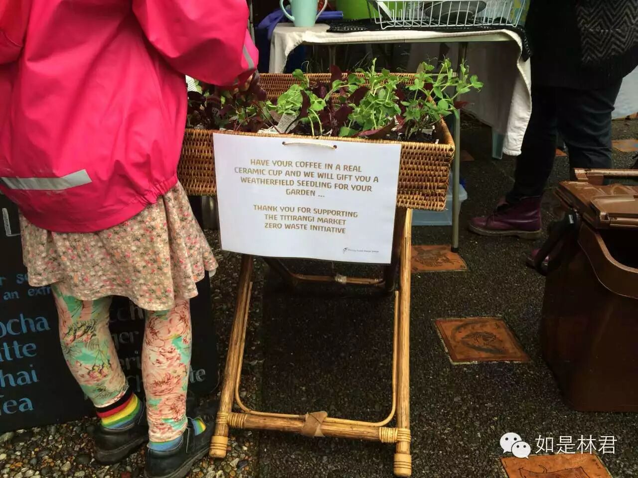 也许是因为这个集市已经搞了很多年的缘故吧,我看到集市上很少有使用一次性餐具的人,也不是所有不用一次性餐盘的人都会去拿小礼物(迷你绿色小植物一颗),人们悠闲地端着餐盘、拿着咖啡杯或坐或站,边享受美食,边和朋友聊天,减少垃圾、爱护地球的理念在这个小镇上显然已经深入人心,我想这和华德福学校多年来的努力一定密不可分。这样的义务劳动也给了家长和孩子共同为人群服务的机会,意义真是太多了。