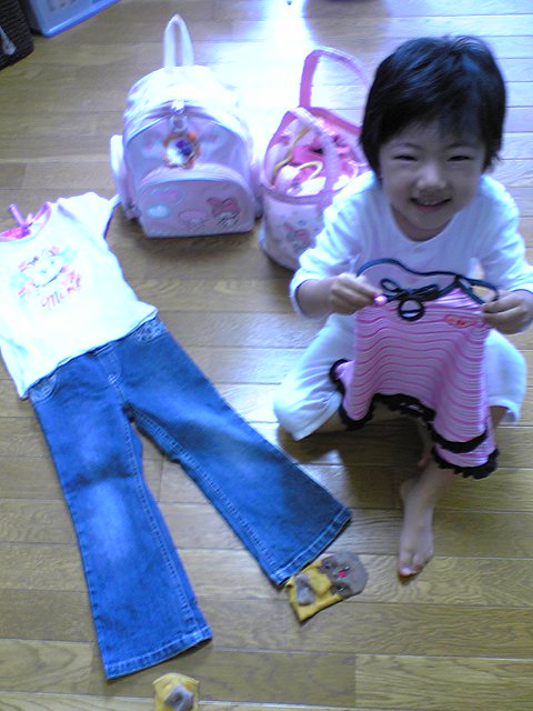 http://pds.exblog.jp/pds/1/200807/01/10/a0023210_2312755.jpg早上匆匆忙忙拍到妞妞准备去保育园的必备品时的情景。