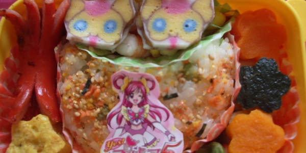 (ps:*「キャラ弁」:キャラクター、character。卡通便当。就是妈妈们为了增加孩子的食欲,在做盒饭时,想方设法用蔬菜呀,香肠呀什么什么的做成孩子们喜欢的动漫里的主角。在日本不用上班的主妇中,比较流行吧。)