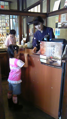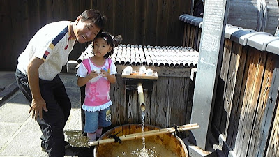 这里的水很好喝。所以伏见以前也叫做伏水的。老K恬不知耻的凑过来和小A合影。