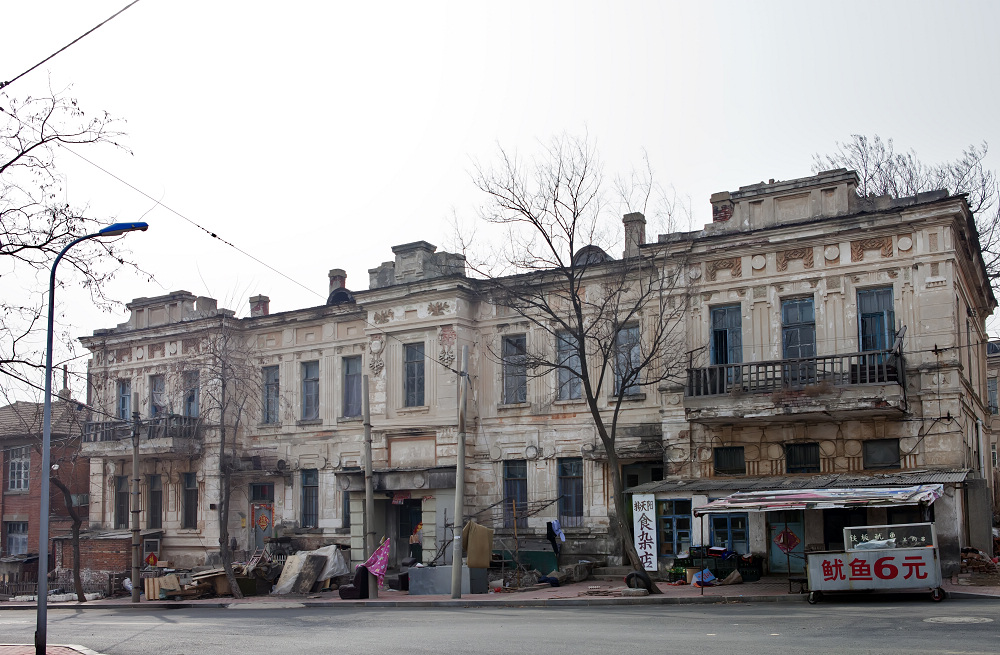 这座俄式老建筑位于太阳沟新市区五四街25号、27号,俄国强租和日本殖民统治时期都是用作旅馆的。因为体量大,外面刷白色涂料,附近居民俗称大白楼。