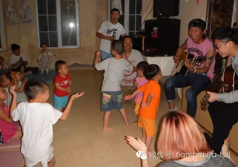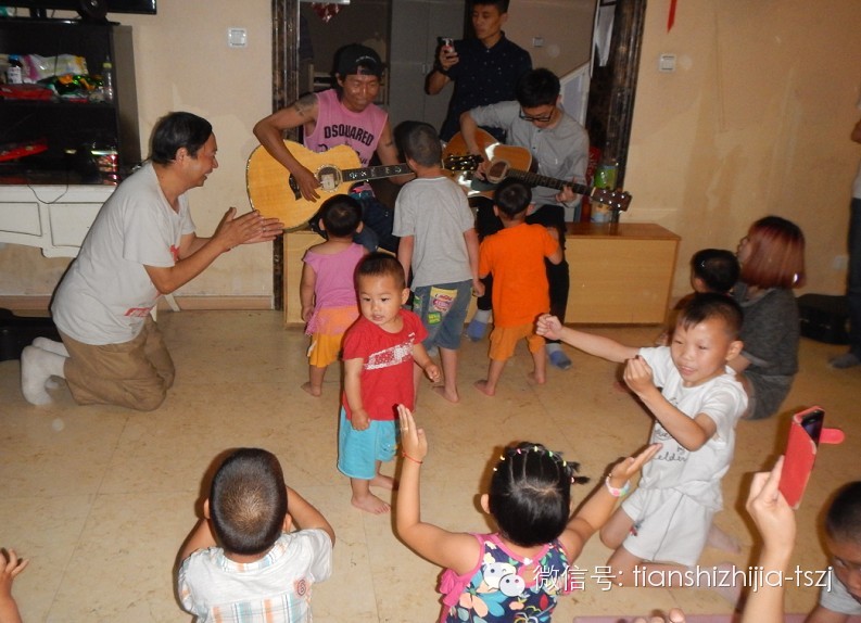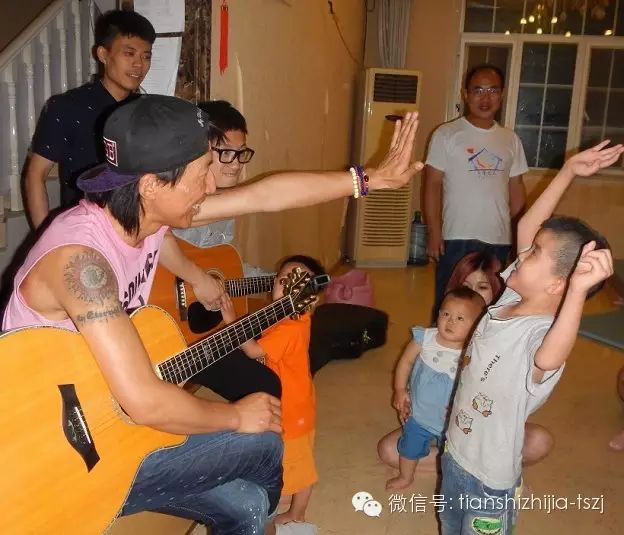 下午回到家,刚刚睡醒,孩子们和工作人员就迎来了她们熟悉并且喜爱的陈羽凡、白百合,还有陈俊豪、米可儿。大人孩子都十分喜欢羽凡和海泉的歌,所以这次羽凡就一直弹着自己的吉他,为孩子们一首接着一首的唱,孩子们都争先恐后地跟着唱。平时孩子们20点就准备睡觉了,但是昨天晚上孩子们20:30还不罢休,还坐在羽凡、陈俊豪跟前认真听着歌。