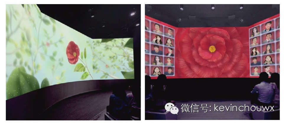 最后一区多媒体影片,影片中的山茶花栩栩如生,耳边播放着爱茉莉集团之歌「美,可以改变世界」的主题曲,这首歌曲也是员工宿舍的起床音乐喔!