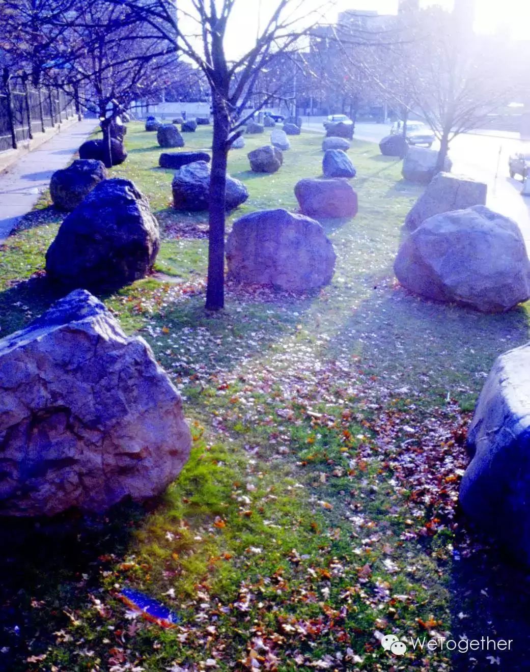 通常所谓的简约艺术是指造型与材料被极端简化的抽象艺术创作,而非生长于大地并与之发生密切联系的艺术。但在二十世纪后半叶,引入了环境意识的艺术家的创作活动将简约艺术的手法带到了室外空间,随之室外公共空间设计的命题也使人们从本质上重新思考——所谓公园设计难道仅仅是单纯地砌高低曲折的园路、设置坐椅、开展有限的场地绿化?——以这个作品为例,场地本被喧嚣的城市道路包围,这是对公园很不利的环境因素。如果这个街角失却了巨岩的形体与其粗糙的肌理所带来的具有视觉冲击力的紧张感,场地的力量很可能被不利的环境因素所压抑。直截了当地反映素材本身的创作手法可见于安德烈的早期作品——平面成正方形的钢板拼合,整齐切割的木材展示,美术馆空间里满铺的小石块阵列。纯粹数列化的排列方式使得平面空间充满延续的张力,这时形态上的意味已不复存在,我们所强烈感知的是材质本身的特性。但是美术馆内所展示的作品与《石之广场》有着本质上的差异,后者作为人们亲身可入可触的室外简约艺术作品具有前者所不具备的场所性。哈特福德镇的人们也并未将其视作美术馆的作品,而是将其纳入日常生活。岩石阵列,对于开车兜风而从其一侧经过的人,对于穿越公园的步行者,因为运动速度的不同而在视域中击发不同的节奏。广场紧邻一片古老的教会墓地,石阵的形式语言与墓碑群的样态不可思议地协调一致。